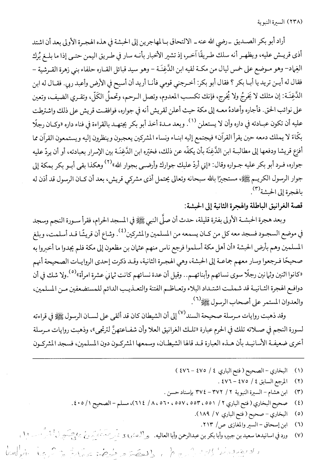 وبعد هجرة الحبشة الأولى بفترة قليلة، حدث أن صلّى النبي صلّى الله عليه وسلّم في المسجد الحرام، فقرأ سورة النجم وسجد في موضع السجود فسجد معه كل من كان يسمعه من المسلمين والمشركين «4» . وشاع أن قريشا قد أسلمت، وبلغ المسلمين وهم بأرض الحبشة «أن أهل مكة أسلموا فرجع ناس منهم عثمان بن مظعون إلى مكة فلم يجدوا ما أخبروا به صحيحا فرجعوا وسار معهم جماعة إلى الحبشة، وهي الهجرة الثانية، وقد ذكرت إحدى الروايات الصحيحة أنهم «كانوا اثنين وثمانين رجلا سوى نسائهم وأبنائهم ... وقيل إن عدة نسائهم كانت ثماني عشرة امرأة» «5» . ولا شك في أن دوافع الهجرة الثانية قد شملت اشتداد البلاء وتعاظم الفتنة والتعذيب الدائم للمستضعفين من المسلمين، والعدوان المستمر على أصحاب الرسول صلّى الله عليه وسلّم «6» .