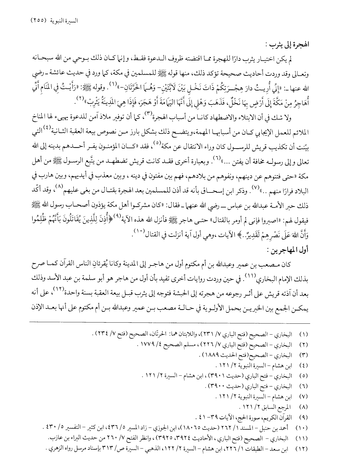 (12) ابن سعد- الطبقات 1/ 226، ابن هشام- السيرة 2/ 122، الذهبي- السيرة ص/ 313 بإسناد مرسل رواه الزهري.