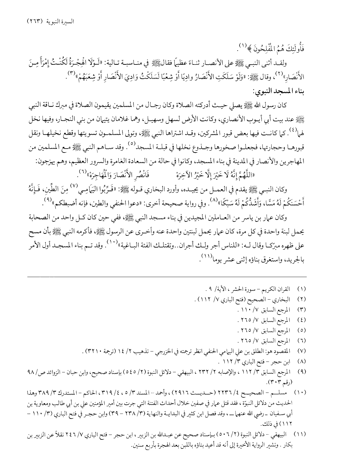 (11) البيهقي- دلائل النبوة (2/ 506) بإسناد صحيح عن عبد الله بن الزبير، ابن حجر- فتح الباري 7/ 246 نقلا عن الزبير بن بكار. وتشير الرواية الأخيرة إلى أنه قد أعيد بناؤه باللبن بعد الهجرة بأربع سنين.