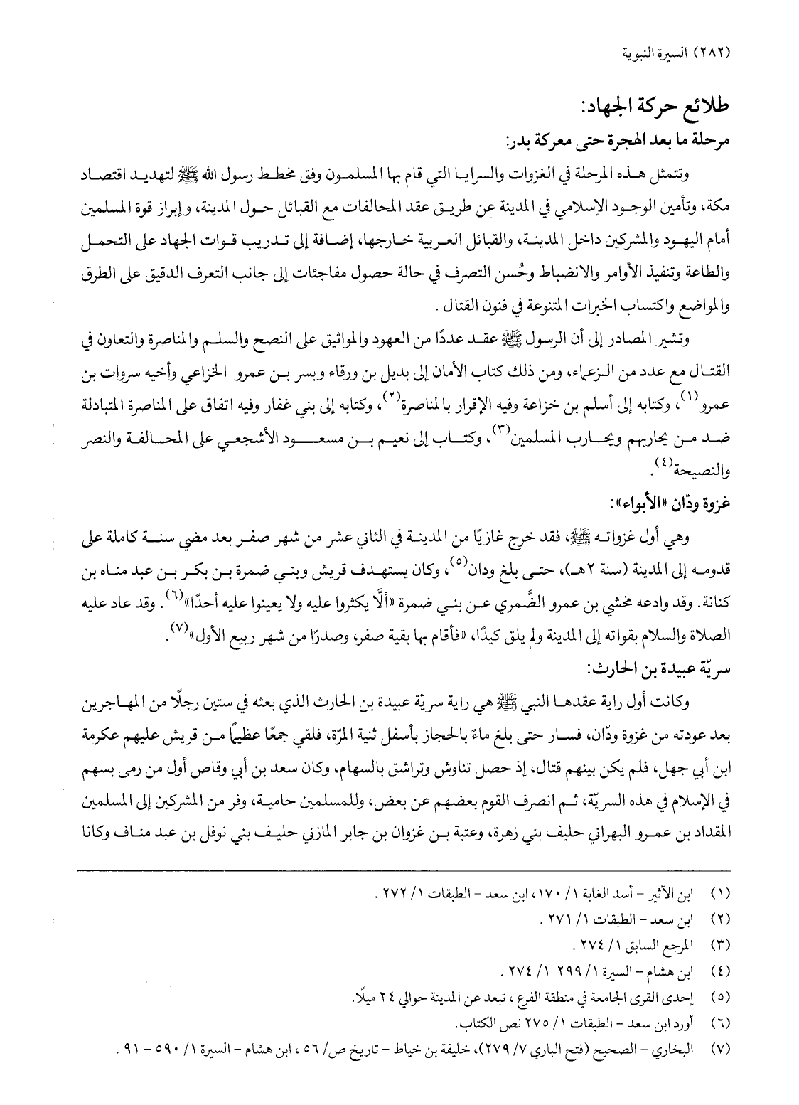 (6) أورد ابن سعد- الطبقات 1/ 275 نص الكتاب.