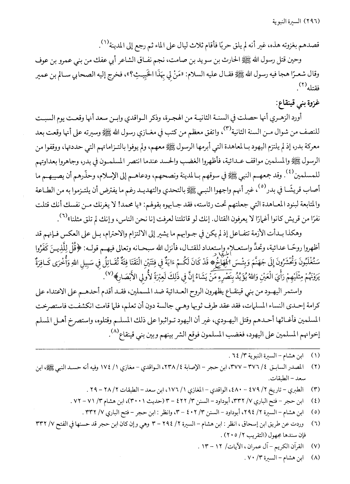 (4) ابن حجر- فتح الباري 7/ 332، أبو داود- السنن 3/ 422- 3 (حديث 3001) ، ابن هشام 3/ 71- 72.