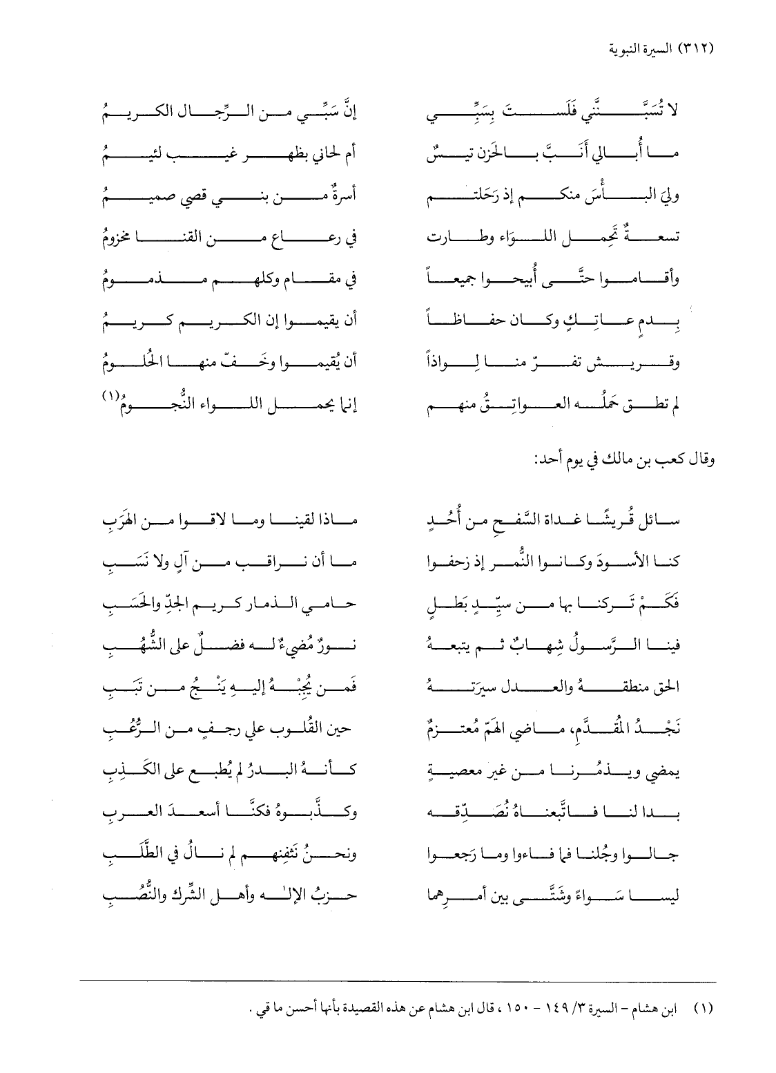 (1) ابن هشام- السيرة 3/ 149- 150، قال ابن هشام عن هذه القصيدة بأنها أحسن ما قيل.