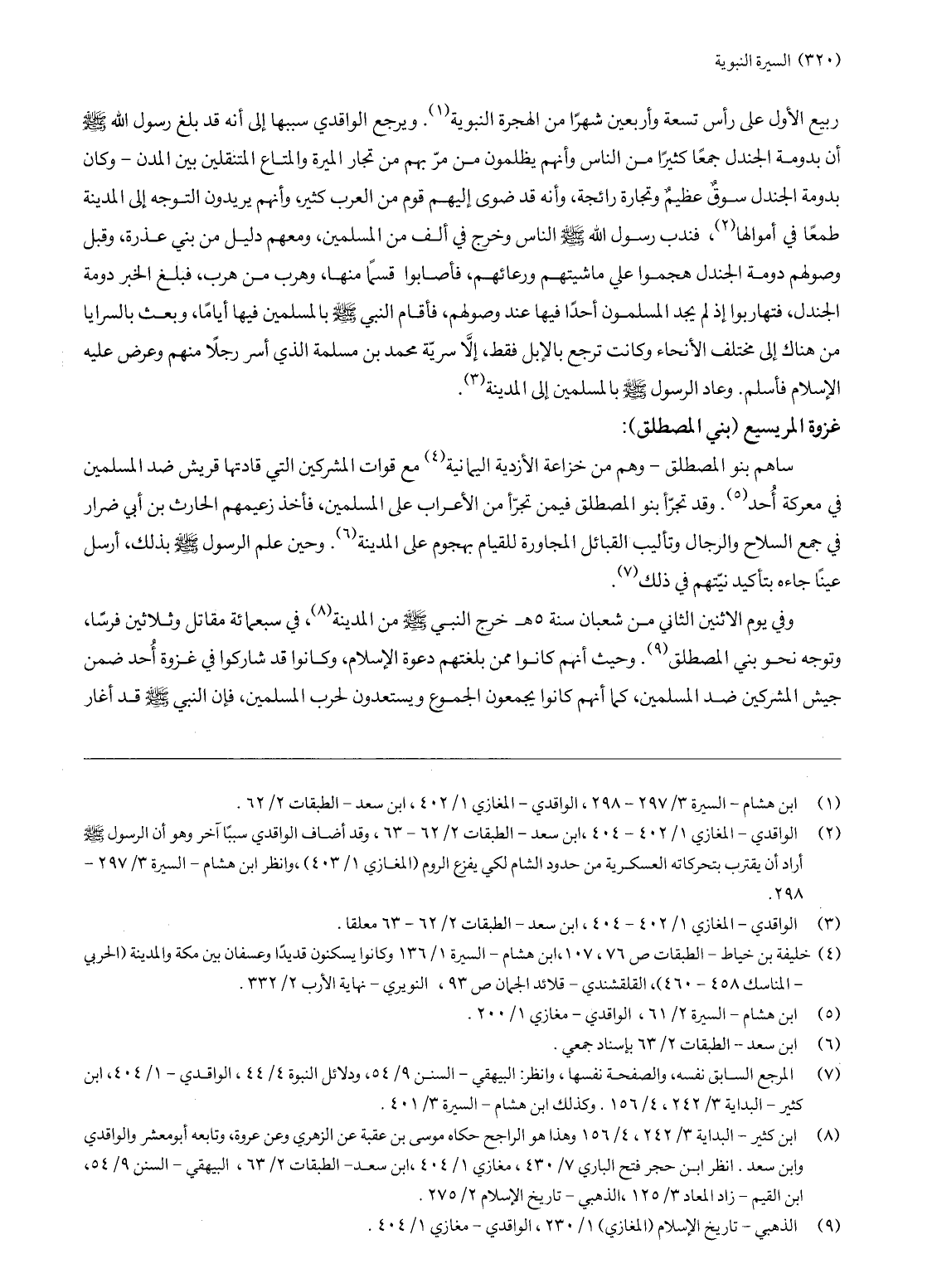 (9) الذهبي- تاريخ الإسلام (المغازي) 1/ 230، الواقدي- مغازي 1/ 404.