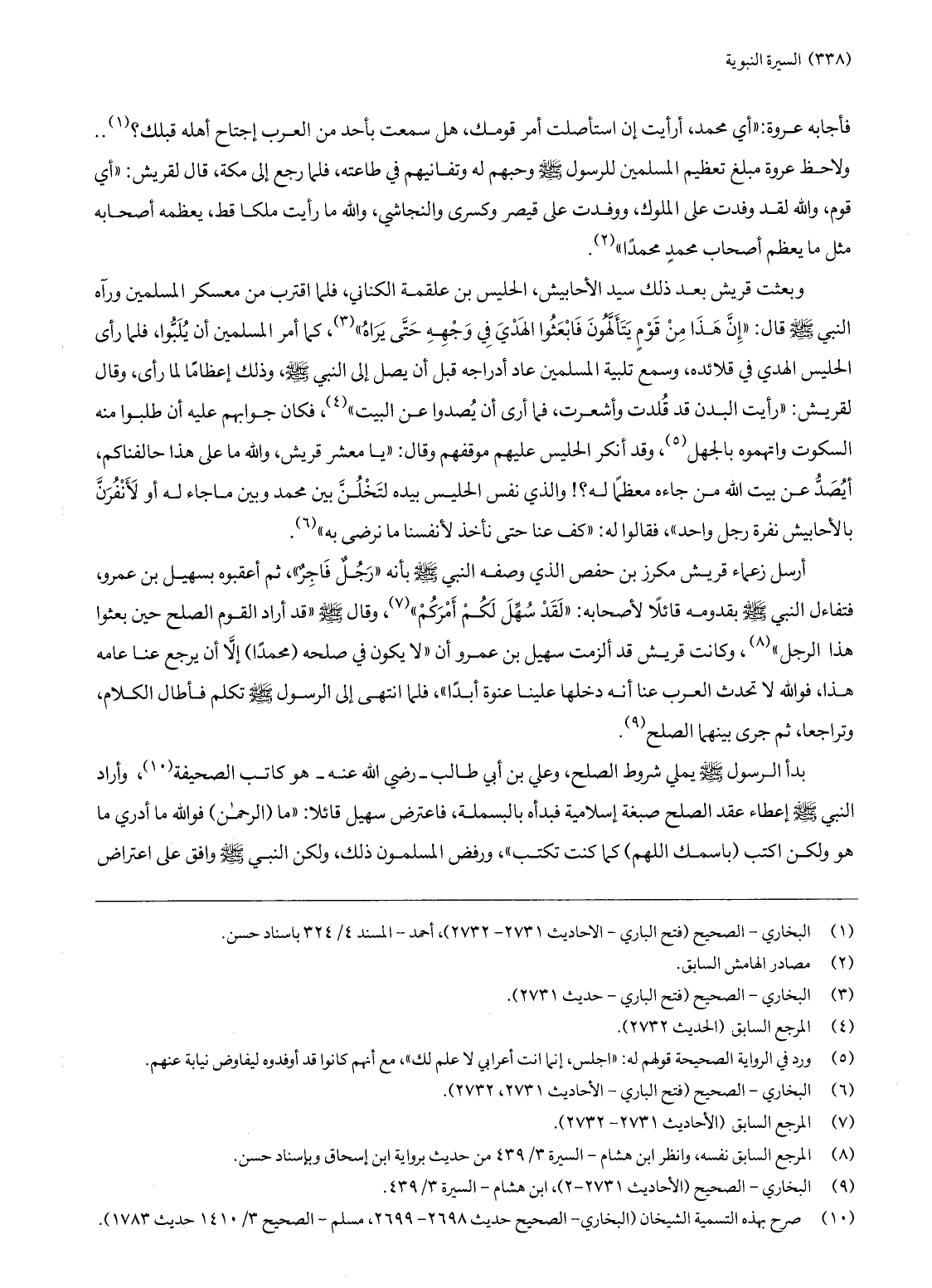 (5) ورد في الرواية الصحيحة قولهم له: «اجلس، إنما أنت أعرابي لا علم لك» ، مع أنهم كانوا قد أوفدوه ليفاوض نيابة عنهم.