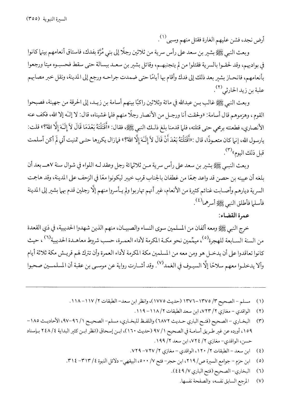 (5) ابن حزم- جوامع السيرة ص/ 219، ابن حجر- فتح 7/ 500، البيهقي- دلائل النبوة 4/ 313- 314.