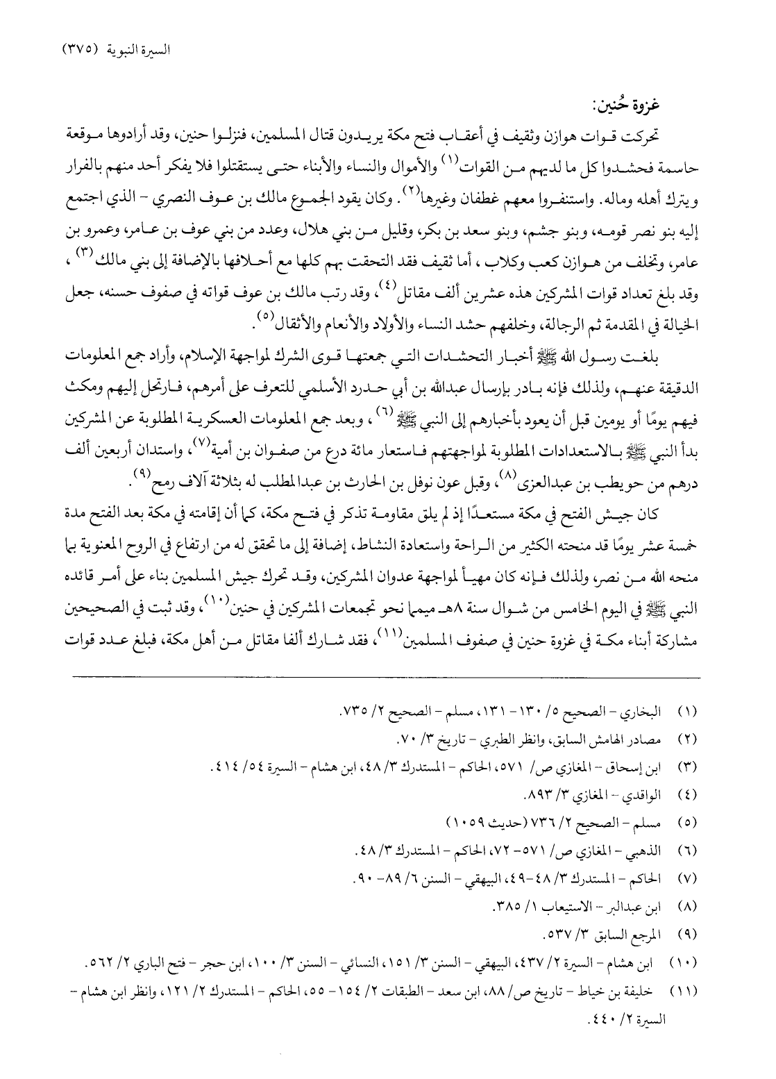 (10) ابن هشام- السيرة 2/ 437، البيهقي- السنن 3/ 151، النسائي- السنن 3/ 100، ابن حجر- فتح الباري 2/ 562.