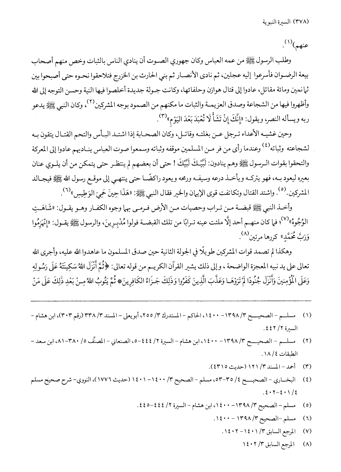 (2) مسلم- الصحيح 3/ 1398- 1400، ابن هشام- السيرة 2/ 444- 5، الصنعاني- المصنّف 5/ 380- 81، ابن سعد- الطبقات 4/ 18.