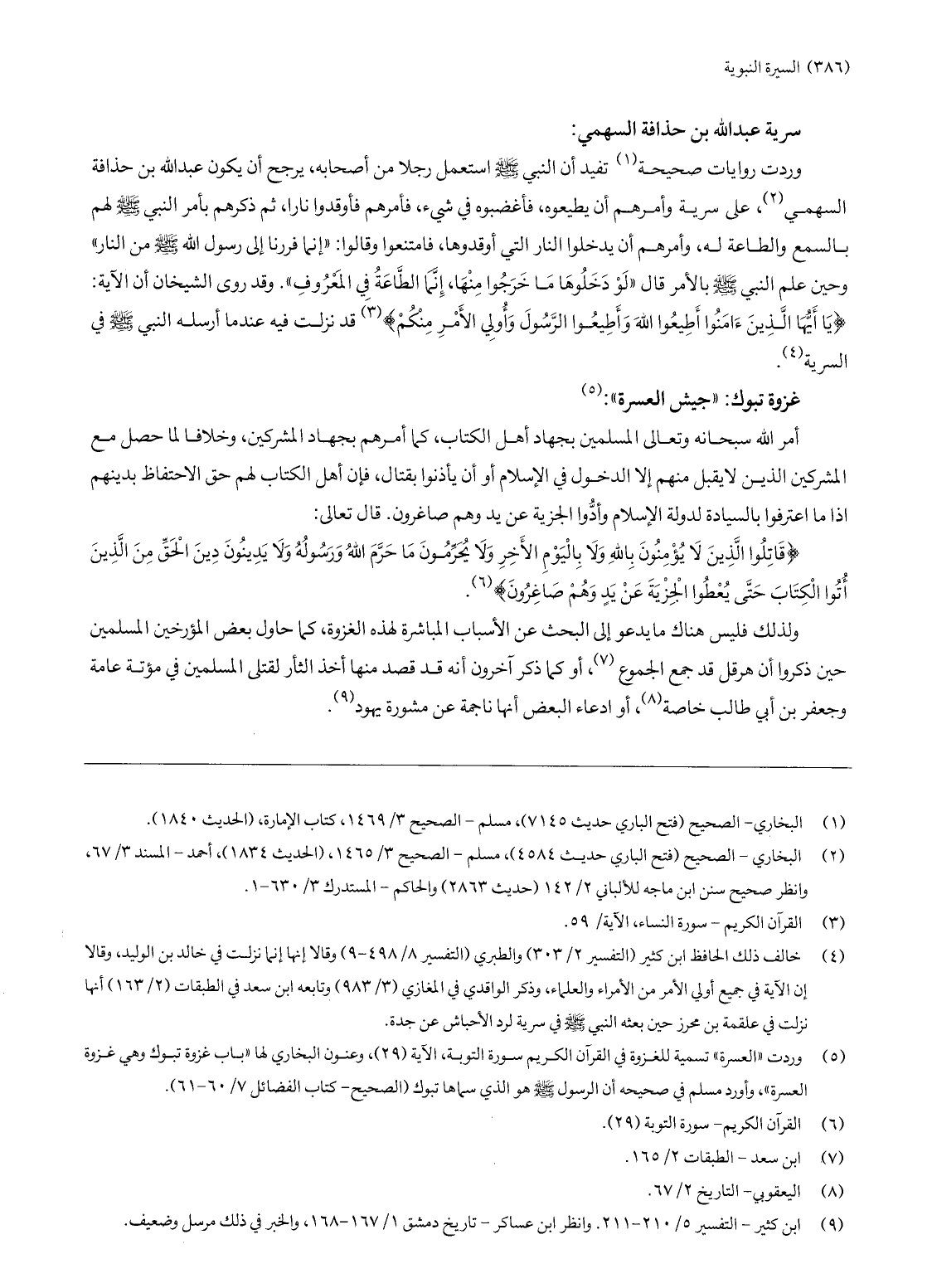 (5) وردت «العسرة» تسمية للغزوة في القرآن الكريم سورة التوبة، الآية (29) ، وعنون البخاري لها «باب غزوة تبوك وهي غزوة العسرة» ، وأورد مسلم في صحيحه أن الرسول صلّى الله عليه وسلّم هو الذي سماها تبوك (الصحيح- كتاب الفضائل 7/ 60- 61) .
