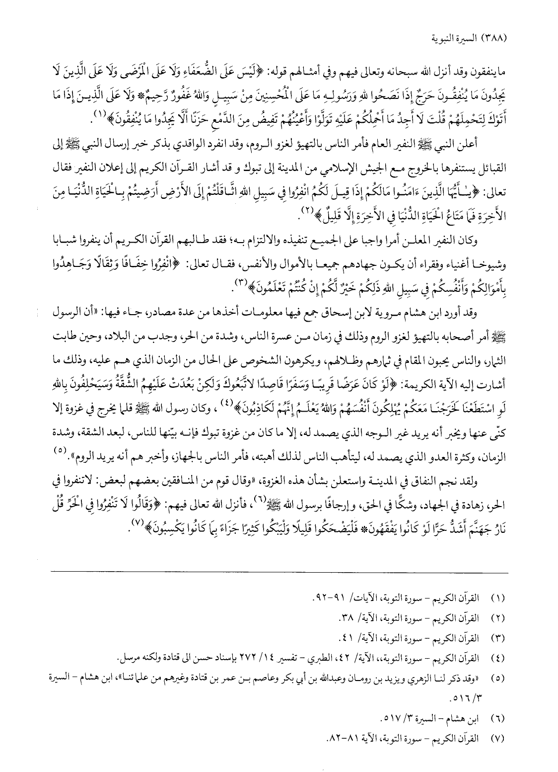 (4) القرآن الكريم- سورة التوبة، الآية/ 42، الطبري- تفسير 14/ 272 بإسناد حسن الى قتادة ولكنه مرسل.