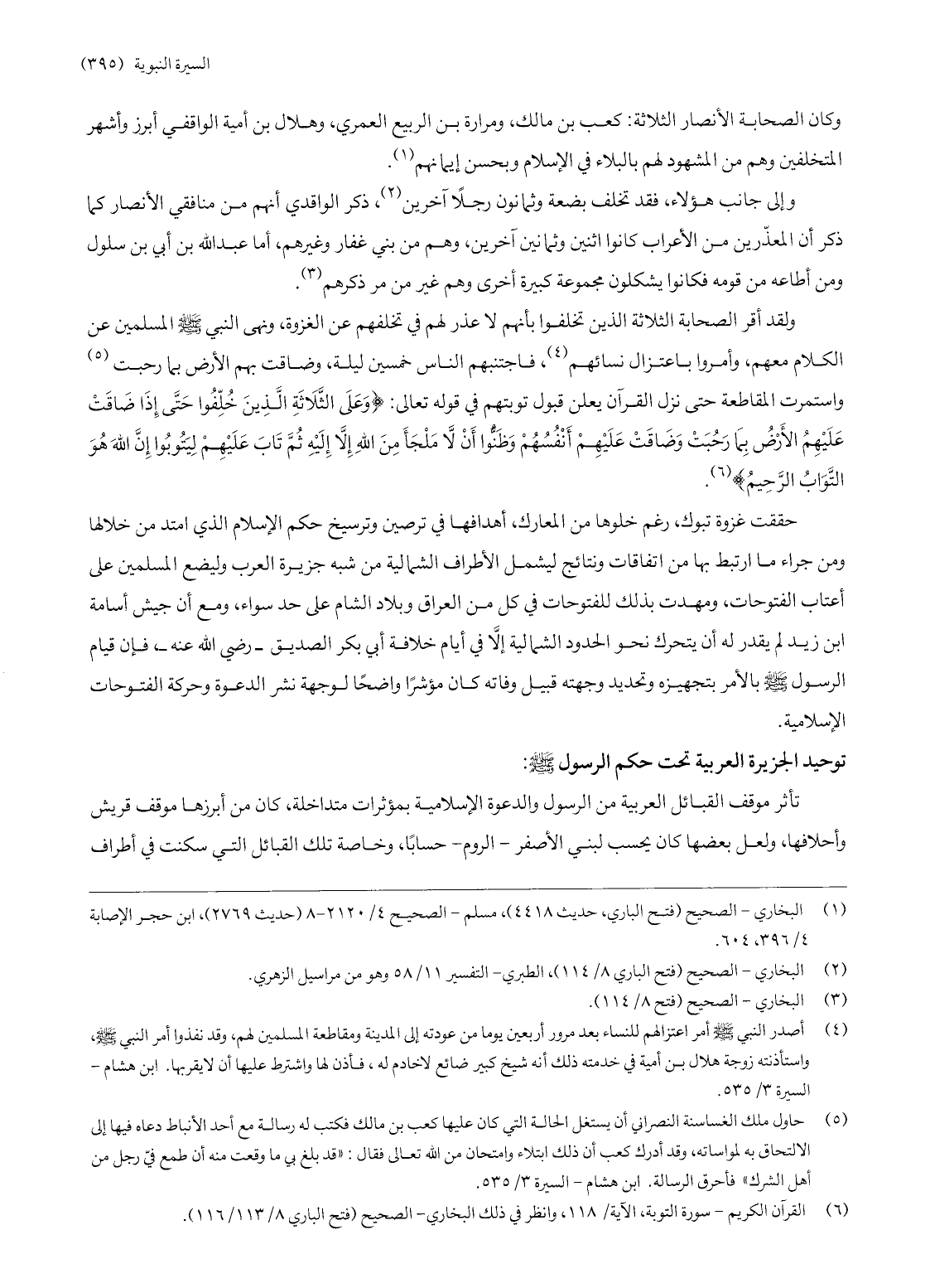 (6) القرآن الكريم- سورة التوبة، الآية/ 118، وانظر في ذلك البخاري- الصحيح (فتح الباري 8/ 113/ 116) .