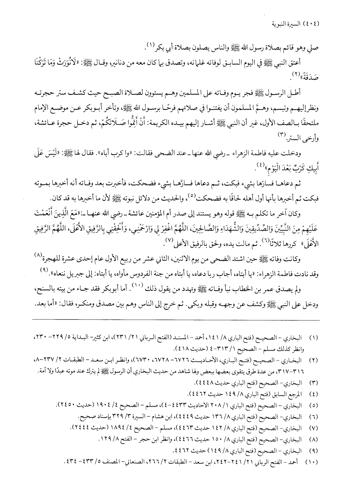(2) البخاري- الصحيح (فتح الباري، الأحاديث 6726- 6728، 6730) ، وانظر ابن سعد- الطبقات 2/ 237- 8، 316- 317، من عدة طرق يتقوى بعضها ببعض ولها شاهد من حديث البخاري أن الرسول صلّى الله عليه وسلّم لم يترك عند موته عبدا ولا أمة.