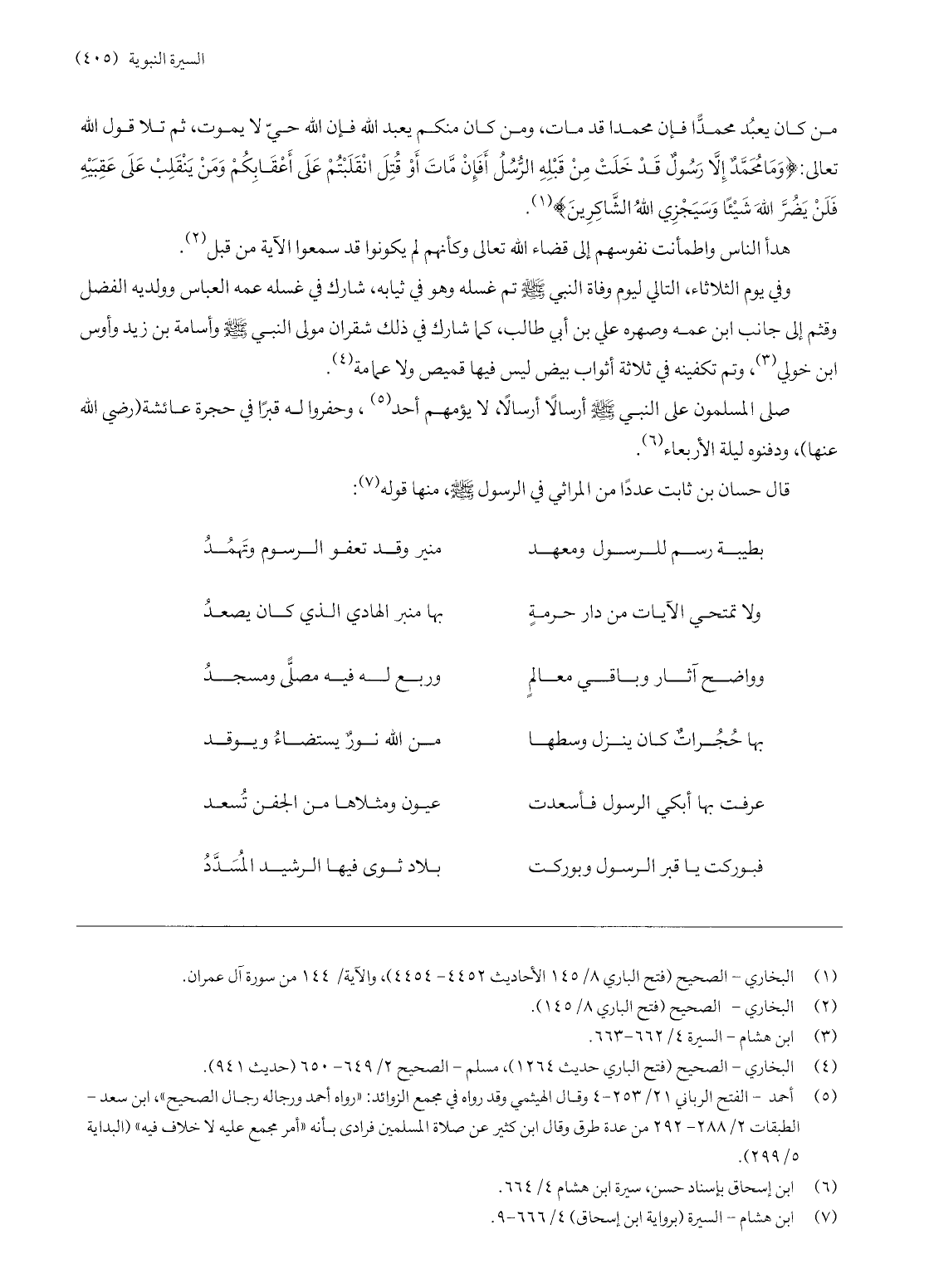 قال حسان بن ثابت عددا من المراثي في الرسول صلّى الله عليه وسلّم، منها قوله «7» :