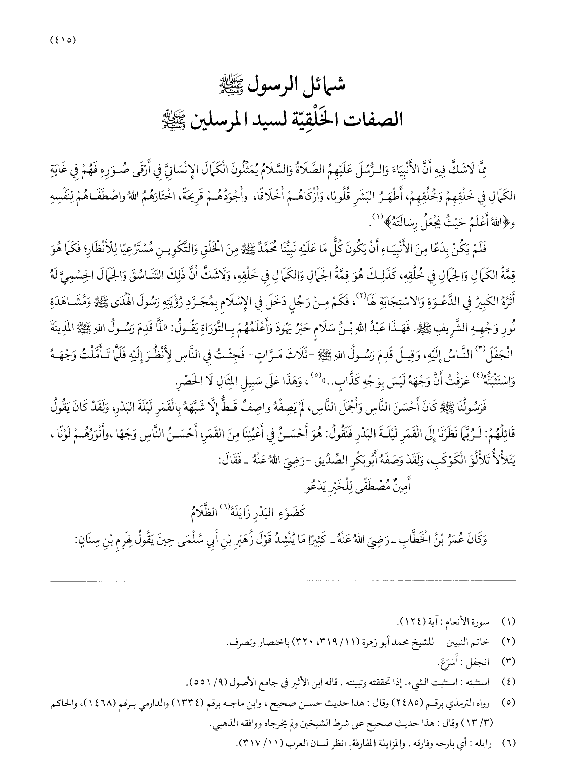 الصفات الخلقيّة لسيد المرسلين صلّى الله عليه وسلّم