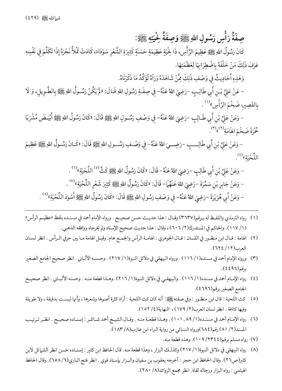 صفة رأس رسول الله صلّى الله عليه وسلّم وصفة لحيته صلّى الله عليه وسلّم: