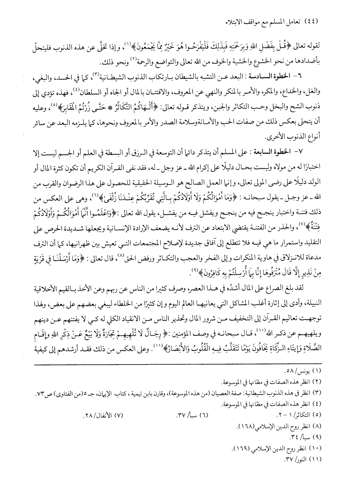 7- الخطوة السابعة: على المسلم أن يتذكر دائما أن التوسعة في الرزق أو البسطة في العلم أو الجسم ليست إلا اختبارا له من مولاه