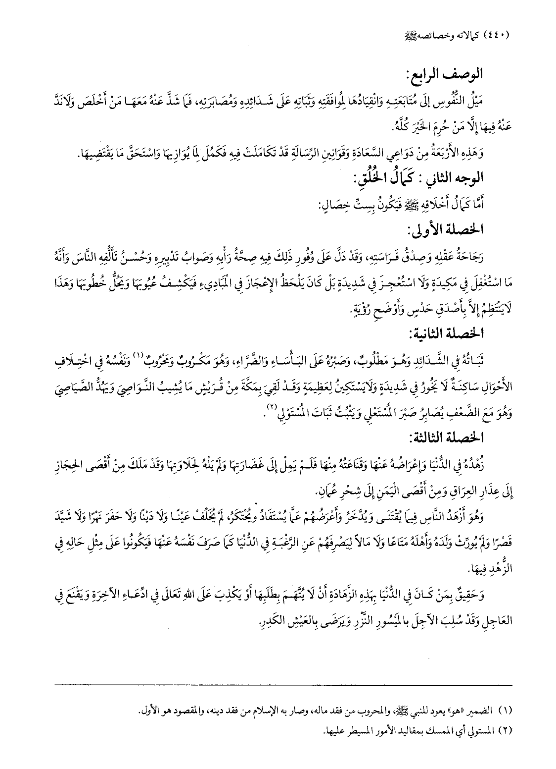وهذه الأربعة من دواعي السّعادة وقوانين الرّسالة قد تكاملت فيه فكمل لما يوازيها واستحقّ ما يقتضيها.