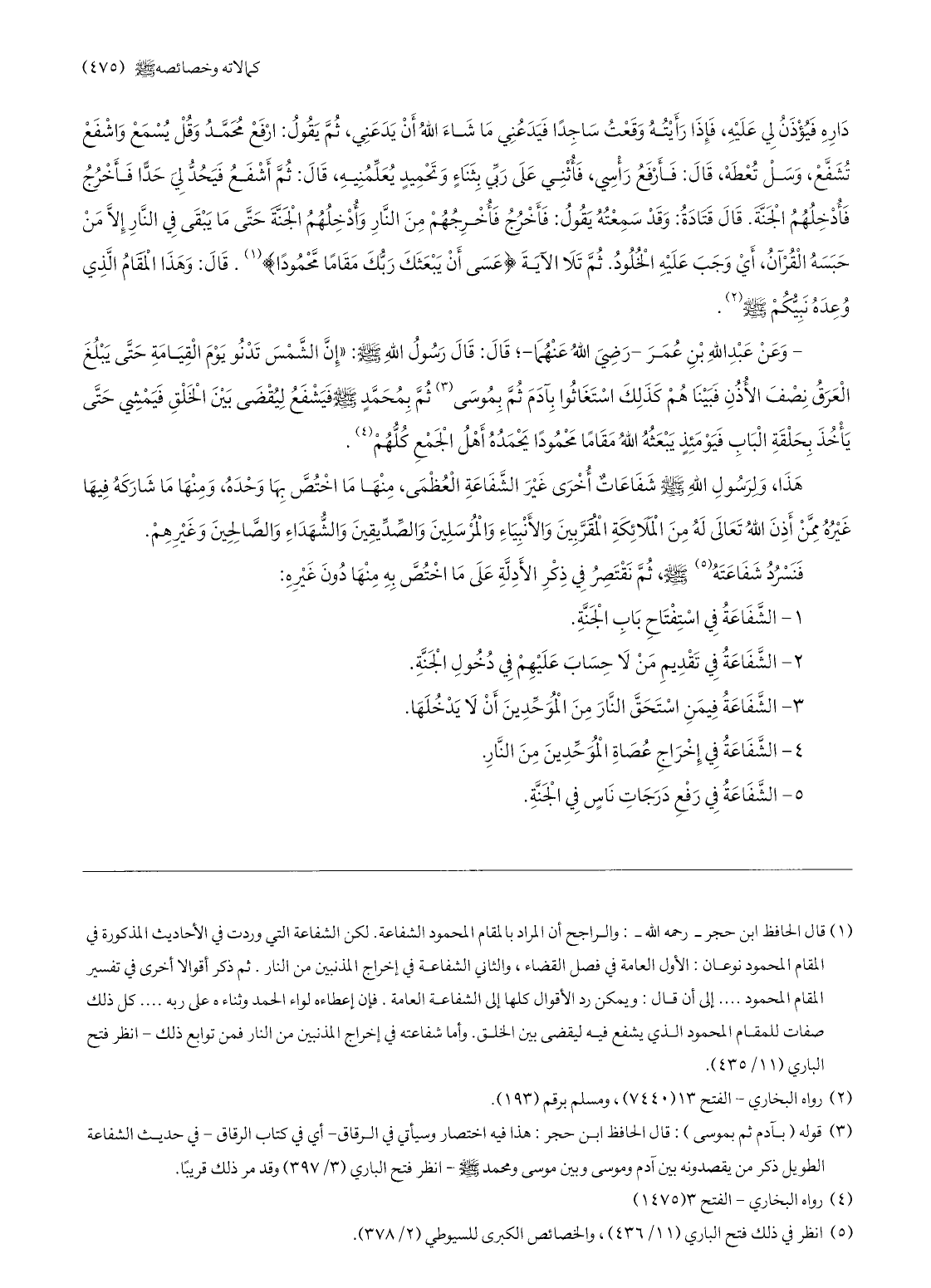 (5) انظر في ذلك فتح الباري (11/ 436) ، والخصائص الكبرى للسيوطي (2/ 378) .