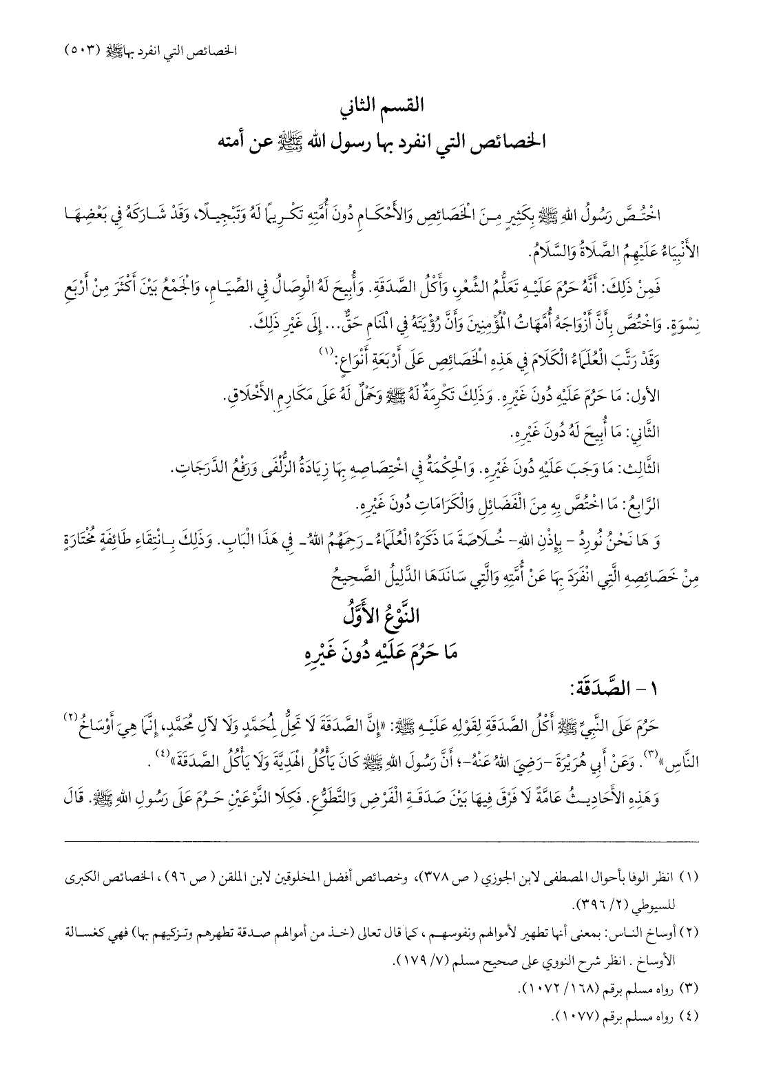 القسم الثاني الخصائص التي انفرد بها رسول الله صلّى الله عليه وسلّم عن أمته