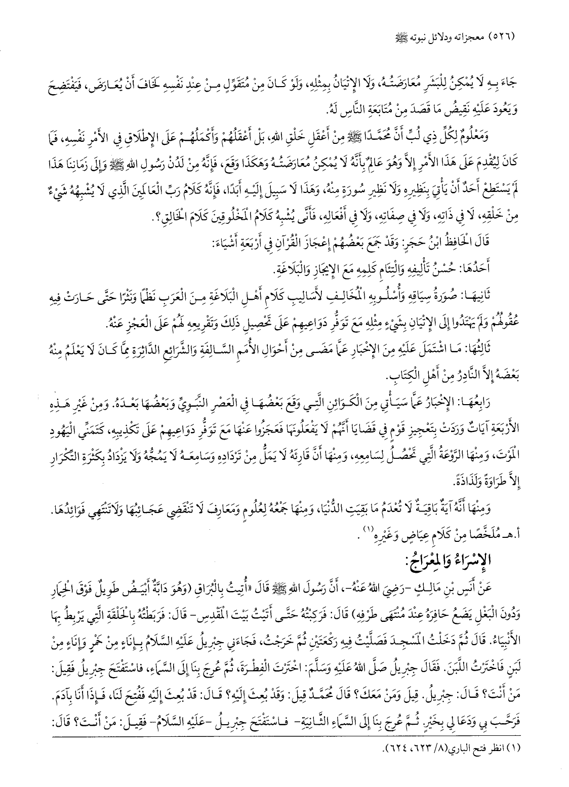ومنها أنّه آية باقية لا تعدم ما بقيت الدّنيا، ومنها جمعه لعلوم ومعارف لا تنقضي عجائبها ولا تنتهي فوائدها. أ. هـ ملخّصا من كلام عياض وغيره «1» .