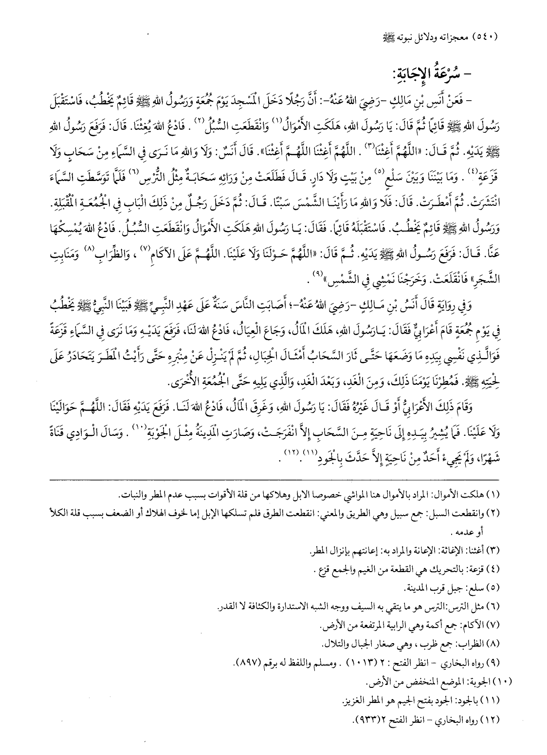 (1) هلكت الأموال: المراد بالأموال هنا المواشي خصوصا الابل وهلاكها من قلة الأقوات بسبب عدم المطر والنبات.
