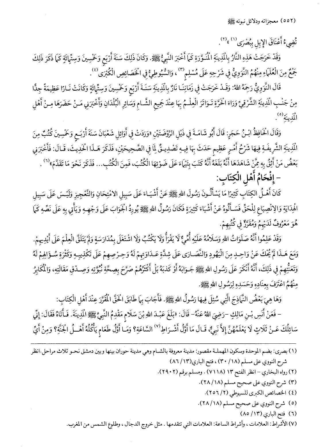 قال النّوويّ رحمه الله: وقد خرجت في زماننا نار بالمدينة سنة أربع وخمسين وستّمائة وكانت نارا عظيمة جدّا من جنب المدينة الشّرقيّ وراء الحرّة تواتر العلم بها عند جميع الشّام وسائر البلدان وأخبرني من حضرها من أهل المدينة «5» .