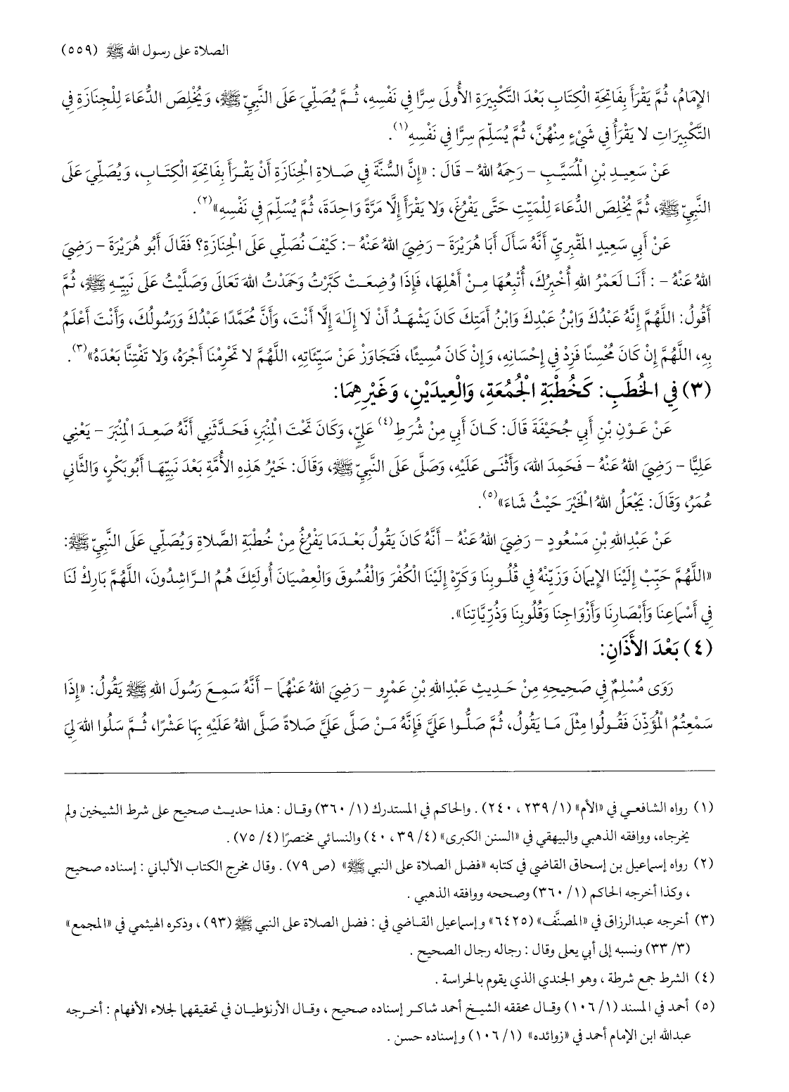 (5) أحمد في المسند (1/ 106) وقال محققه الشيخ أحمد شاكر إسناده صحيح، وقال الأرنؤطيان في تحقيقهما لجلاء الأفهام: أخرجه عبد الله ابن الإمام أحمد في «زوائده» (1/ 106) وإسناده حسن.