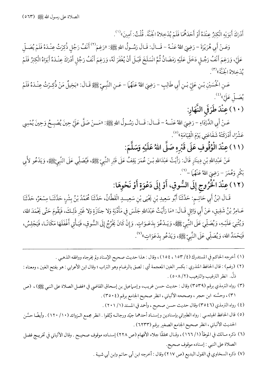 (3) رواه الترمذي برقم (3539) وقال: حديث حسن غريب، وإسماعيل بن إسحاق القاضي في «فضل الصلاة على النبي صلّى الله عليه وسلّم» ، (ص 31) ، وحسّنه ابن حجر، وصححه الألباني، انظر صحيح الجامع برقم (3504) .