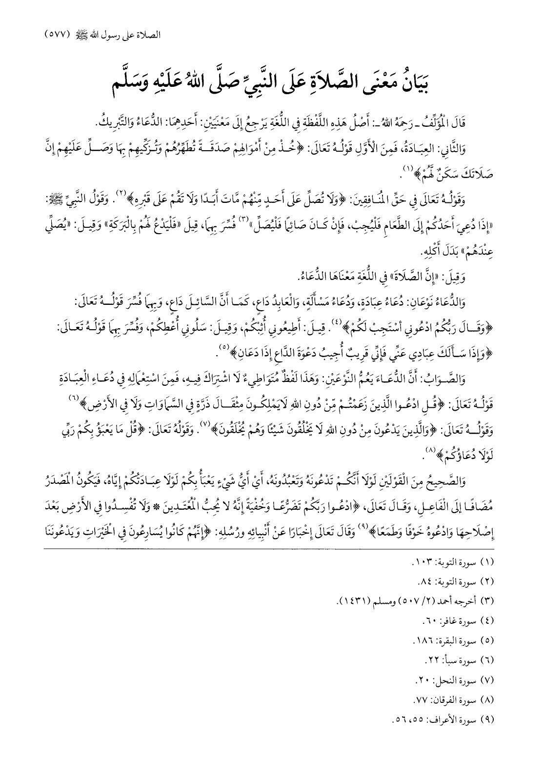 بيان معنى الصّلاة على النّبيّ صلّى الله عليه وسلّم