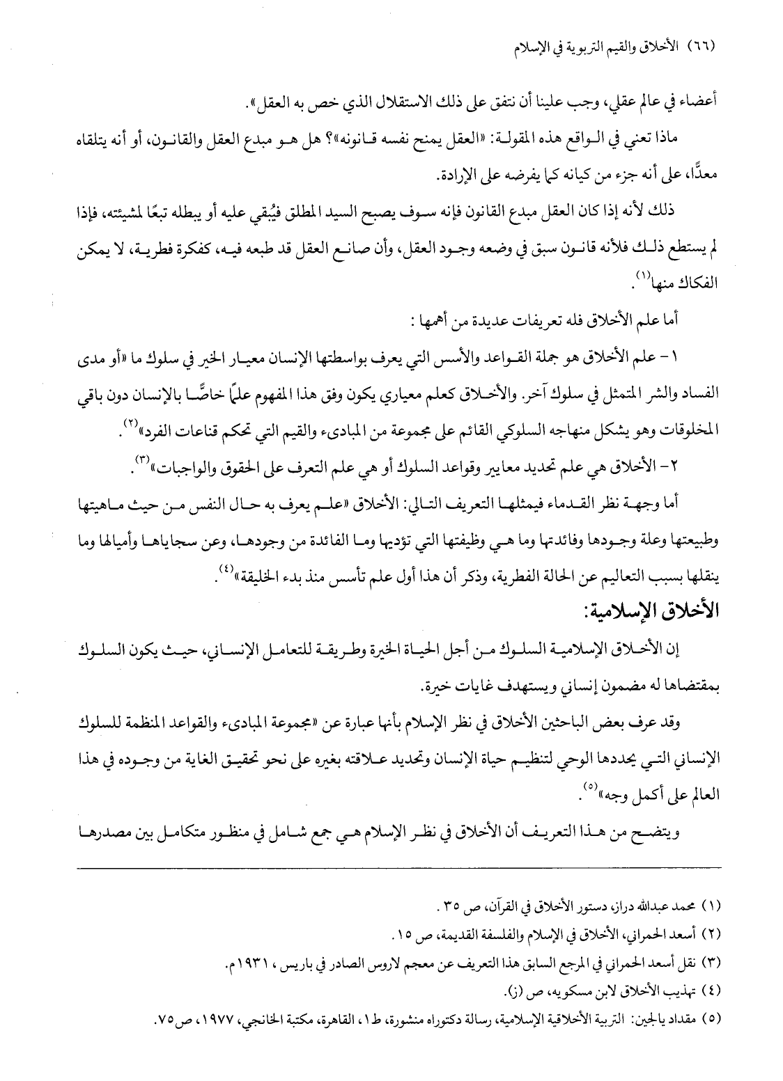 (5) مقداد يالجين: التربية الأخلاقية الإسلامية، رسالة دكتوراه منشورة، ط 1، القاهرة، مكتبة الخانجي، 1977، ص 75.
