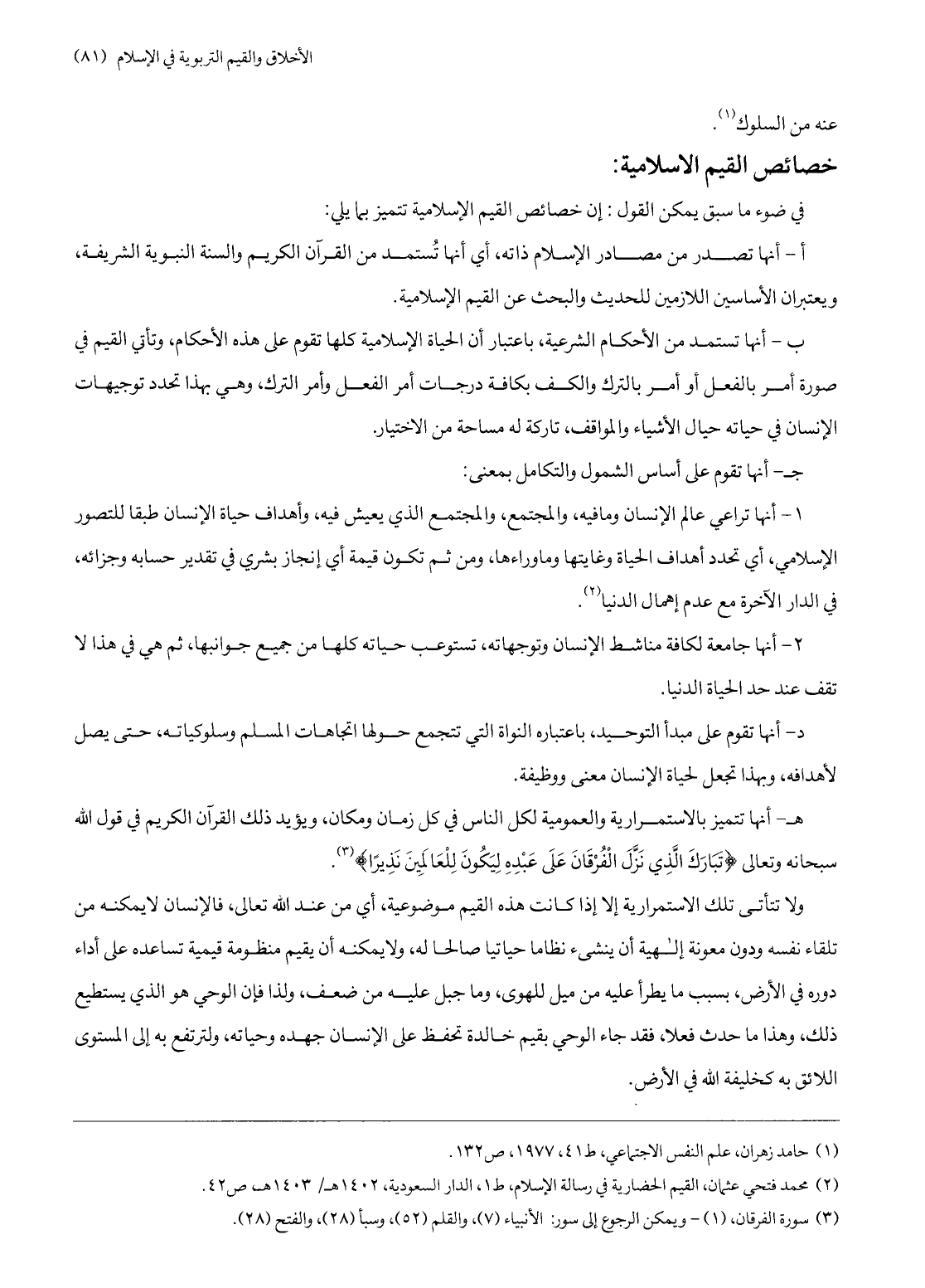 (2) محمد فتحي عثمان، القيم الحضارية في رسالة الإسلام، ط 1، الدار السعودية، 1402 هـ/ 1403 هـ، ص 42.
