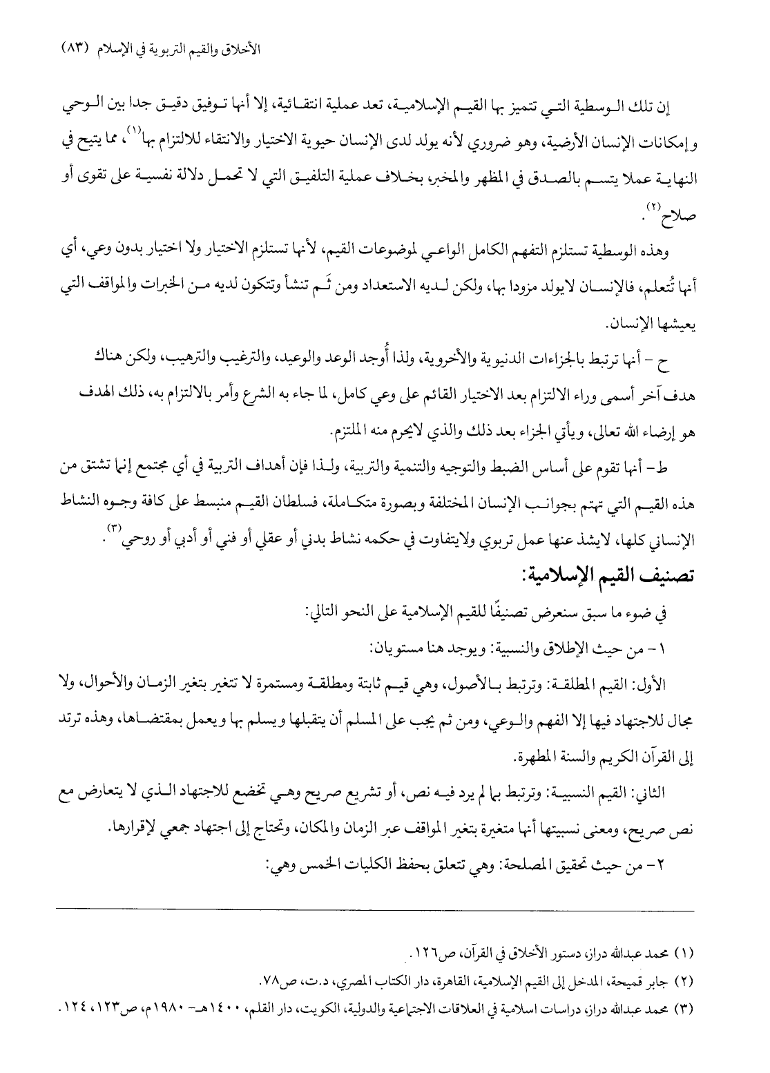 (3) محمد عبد الله دراز، دراسات إسلامية في العلاقات الاجتماعية والدولية، الكويت، دار القلم، 1400 هـ- 1980 م، ص 123، 124.