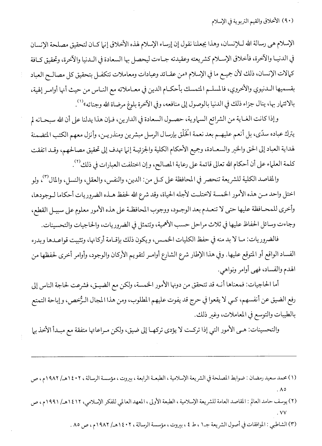 (3) الشاطبي: الموافقات في أصول الشريعة ج 1، ط 4، بيروت، مؤسسة الرسالة، 1402 هـ/ 1982 م، ص 85.