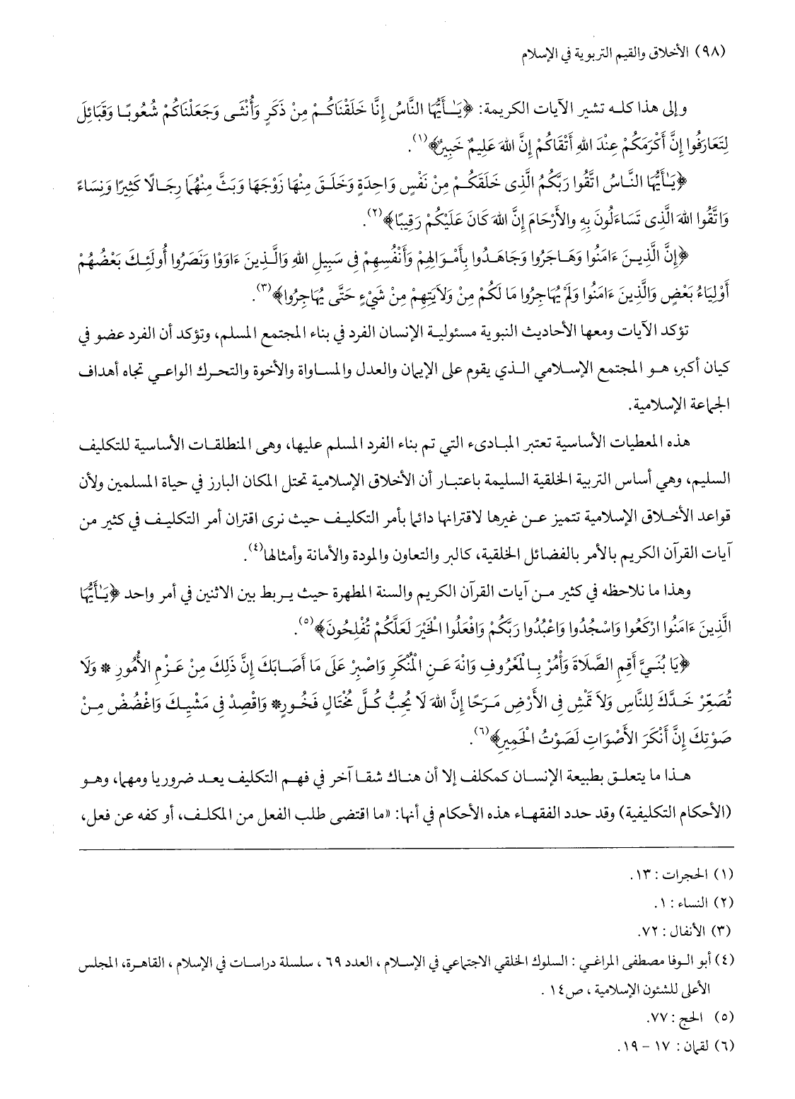 (4) أبو الوفا مصطفى المراغي: السلوك الخلقي الاجتماعي في الإسلام، العدد 69، سلسلة دراسات في الإسلام، القاهرة، المجلس الأعلى للشئون الإسلامية، ص 14.