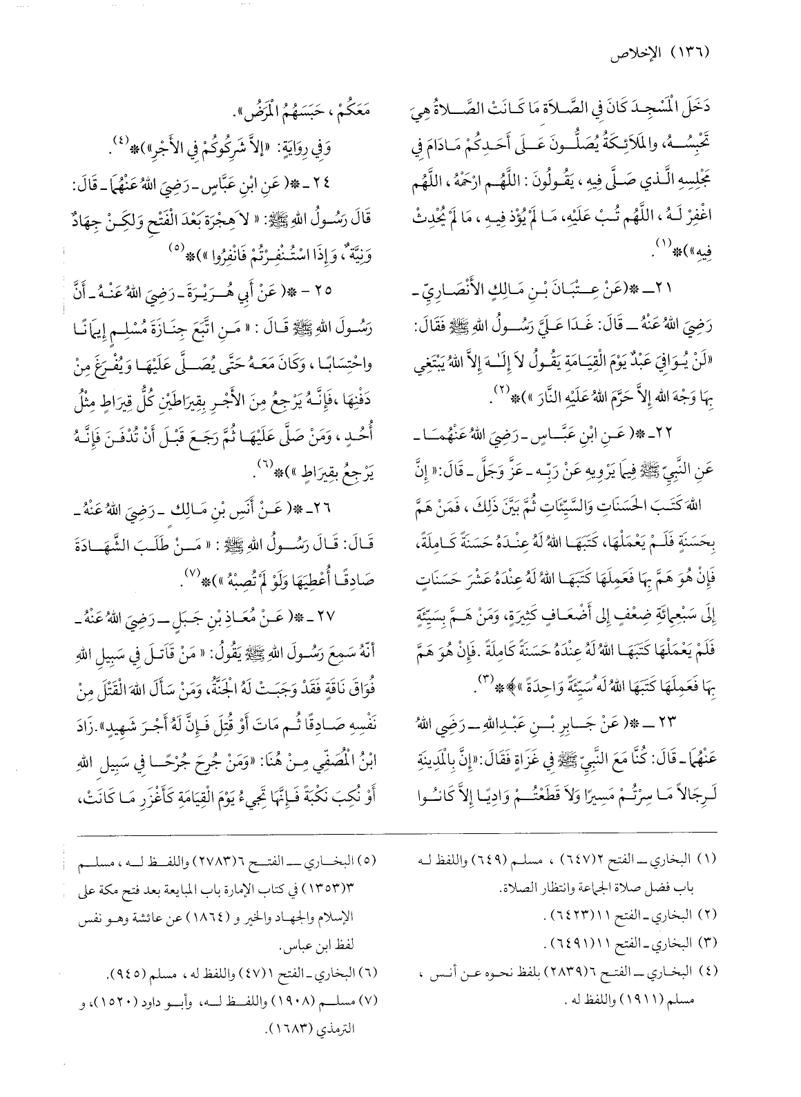 24-* (عن ابن عبّاس- رضي الله عنهما- قال: قال رسول الله صلّى الله عليه وسلّم: «لا هجرة بعد الفتح ولكن جهاد ونيّة، وإذا استنفرتم فانفروا» ) * «5»