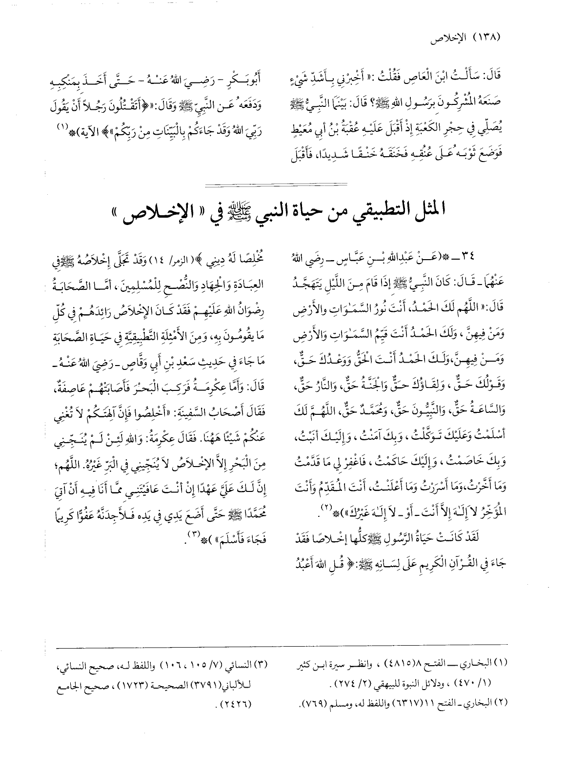 المثل التطبيقي من حياة النبي صلّى الله عليه وسلّم في (الإخلاص)