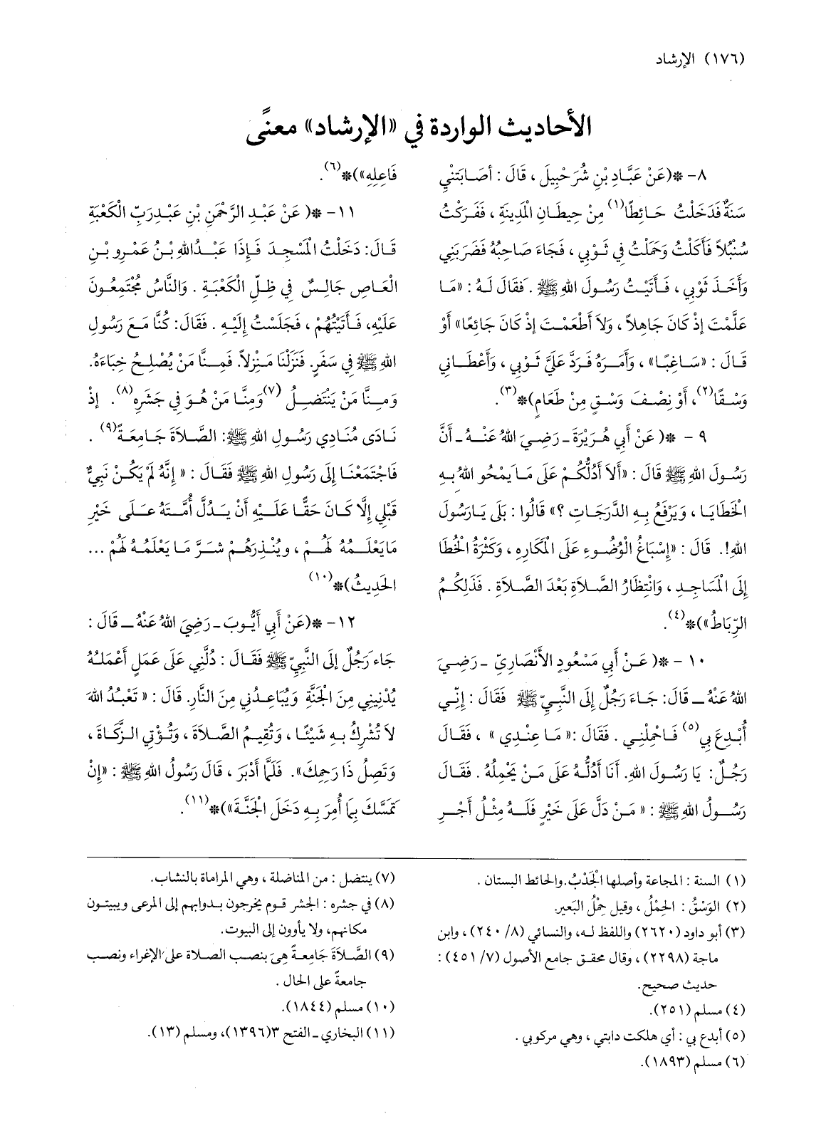 10-* (عن أبي مسعود الأنصارىّ- رضي الله عنه- قال: جاء رجل إلى النّبيّ صلّى الله عليه وسلّم فقال: إنّي أبدع بي «5» فاحملني. فقال: «ما عندي» ، فقال رجل: يا رسول الله. أنا أدلّه على من يحمله. فقال رسول الله صلّى الله عليه وسلّم: «من دلّ على خير فله مثل أجر فاعله» ) *» .