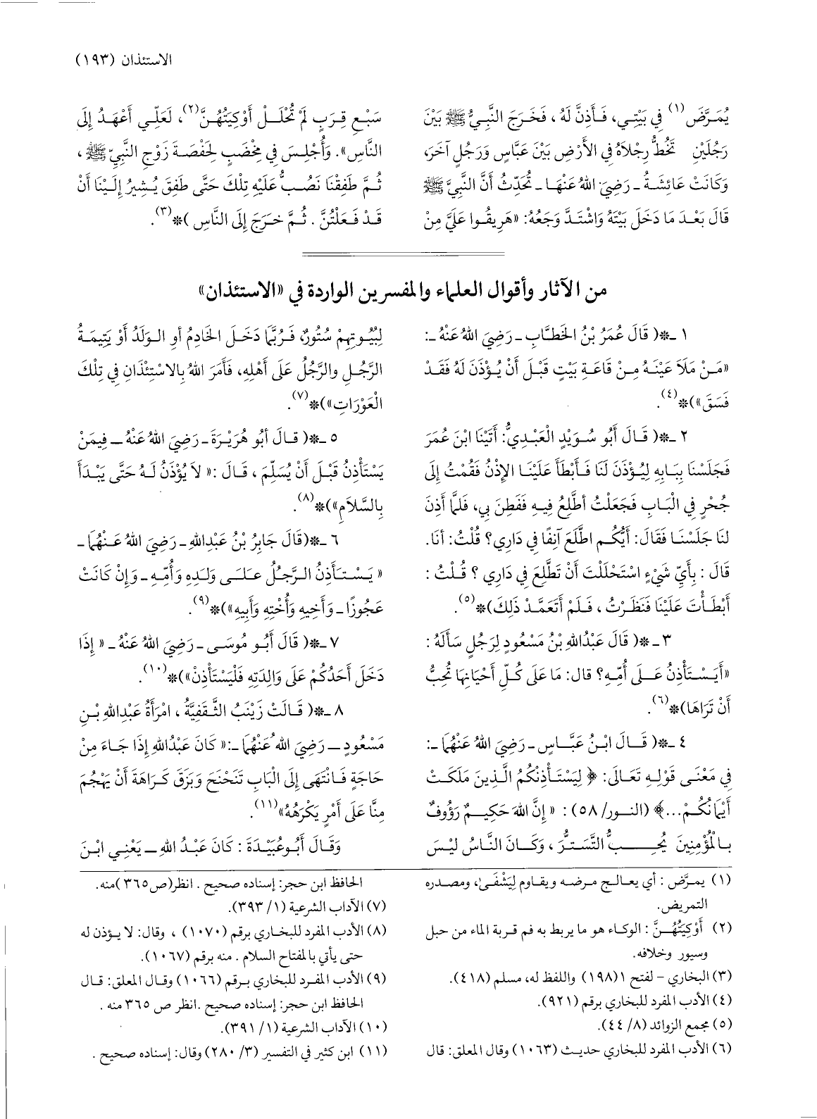 من الآثار وأقوال العلماء والمفسرين الواردة في (الاستئذان)
