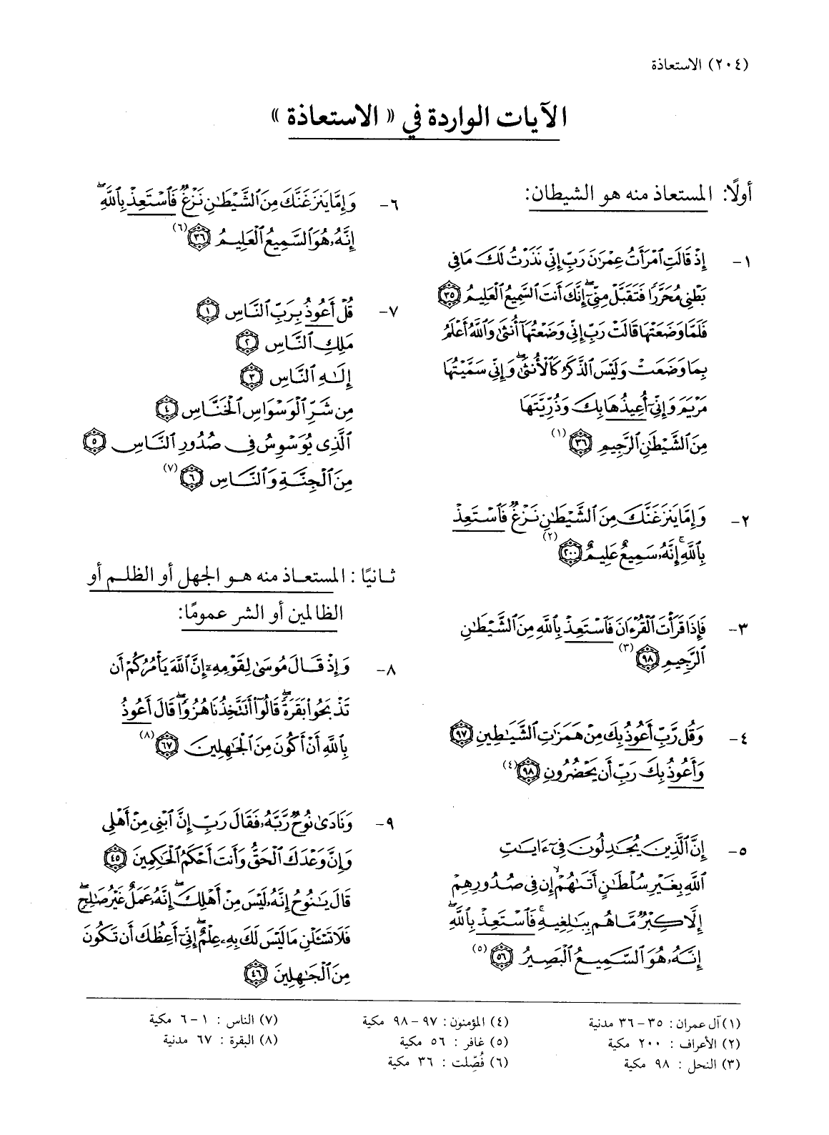 3- فَإِذا قَرَأْتَ الْقُرْآنَ فَاسْتَعِذْ بِاللَّهِ مِنَ الشَّيْطانِ الرَّجِيمِ (98) «3»