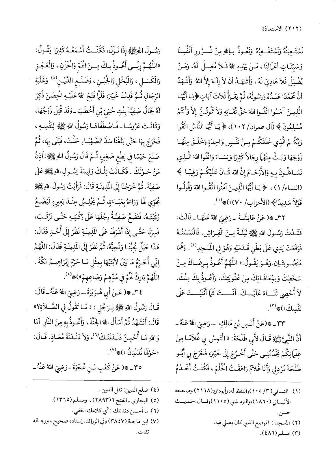 34-* (عن أبي هريرة- رضي الله عنه- قال: قال رسول الله صلّى الله عليه وسلّم لرجل: «ما تقول في الصّلاة؟» قال: أتشهّد ثمّ أسأل الله الجنّة، وأعوذ به من النّار أما والله ما أحسن دندنتك «6» ، ولا دندنة معاذ. قال: «حولها ندندن» ) * «7» .