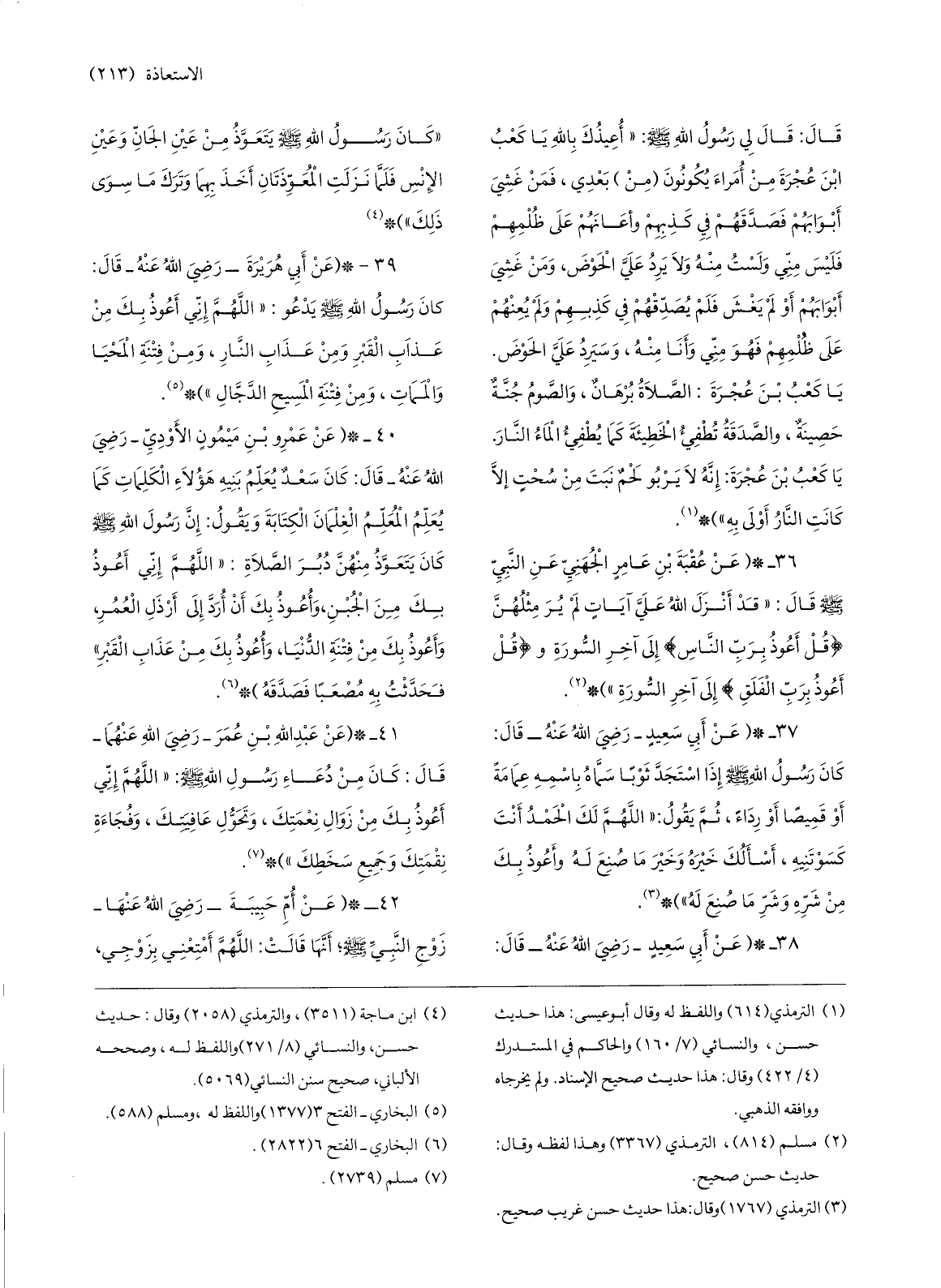 38-* (عن أبي سعيد- رضي الله عنه- قال: «كان رسول الله صلّى الله عليه وسلّم يتعوّذ من عين الجانّ وعين الإنس فلمّا نزلت المعوّذتان أخذ بهما وترك ما سوى ذلك» ) * «4»