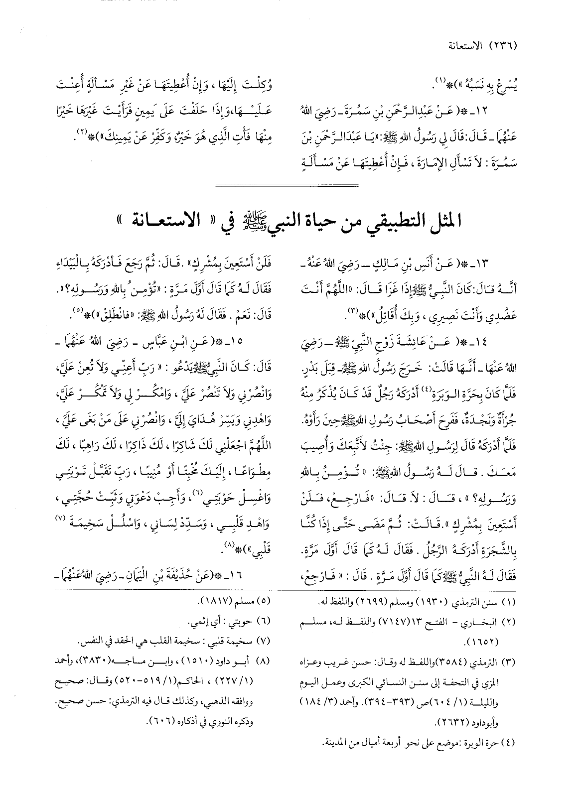 المثل التطبيقي من حياة النبي صلّى الله عليه وسلّم في (الاستعانة)