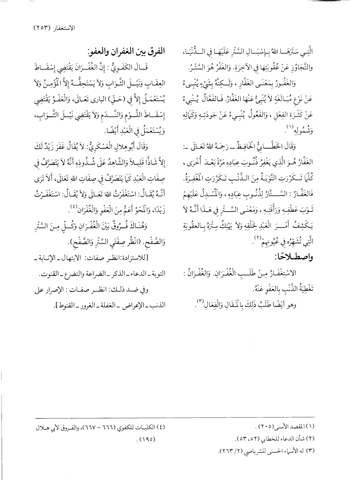 (4) الكليات للكفوي (666- 667) ، والفروق لأبي هلال (195) .