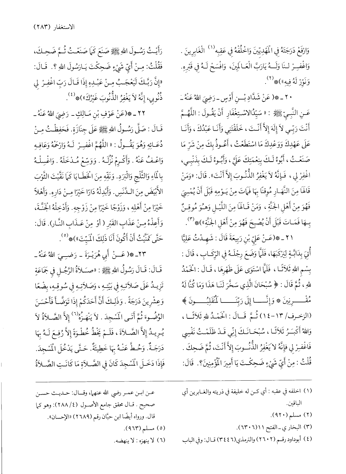 20-* (عن شدّاد بن أوس- رضي الله عنه- عن النّبيّ صلّى الله عليه وسلّم: «سيّد الاستغفار أن يقول: