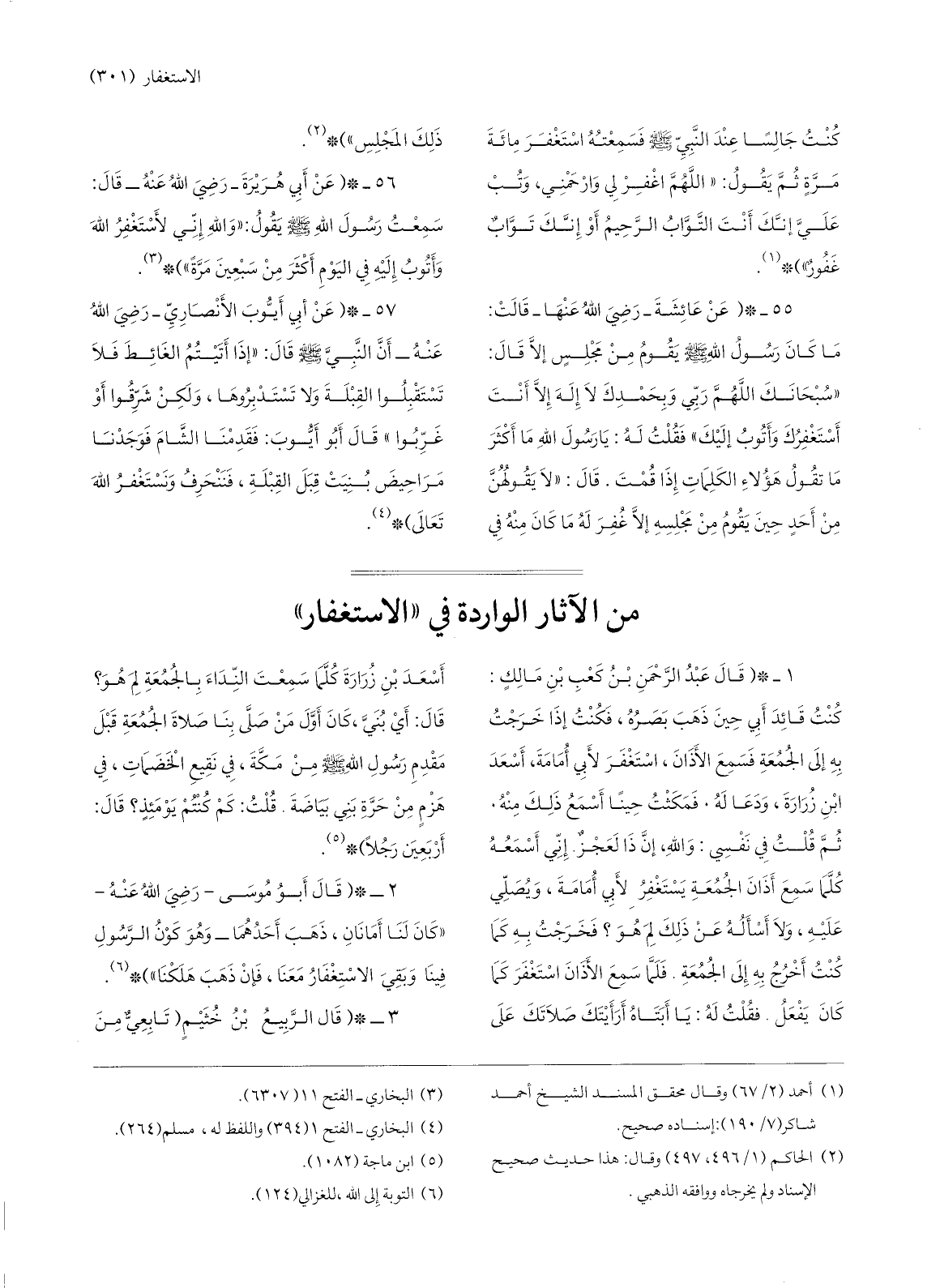 56-* (عن أبي هريرة- رضي الله عنه- قال: سمعت رسول الله صلّى الله عليه وسلّم يقول: «والله إنّي لأستغفر الله وأتوب إليه في اليوم أكثر من سبعين مرّة» ) * «3» .