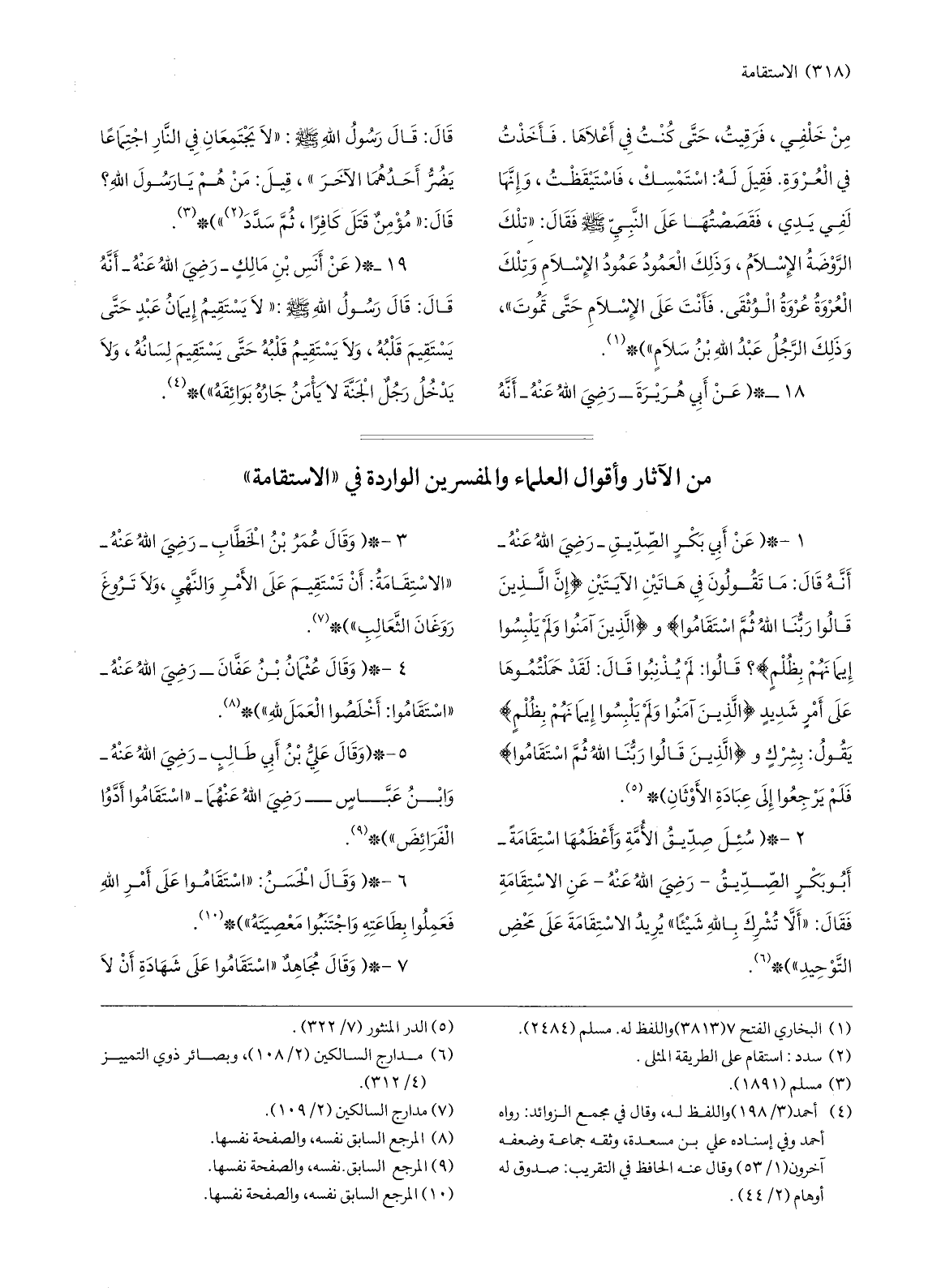 3-* (وقال عمر بن الخطّاب- رضي الله عنه- «الاستقامة: أن تستقيم على الأمر والنّهي، ولا تروغ روغان الثّعالب» ) * «7» .