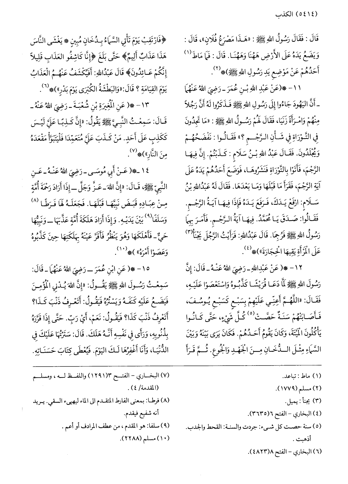 13-* (عن المغيرة بن شعبة- رضي الله عنه قال: سمعت النّبيّ صلّى الله عليه وسلّم يقول: «إنّ كذبا عليّ ليس ككذب على أحد. من كذب عليّ متعمّدا فليتبوّأ مقعده من النّار» ) * «7» .