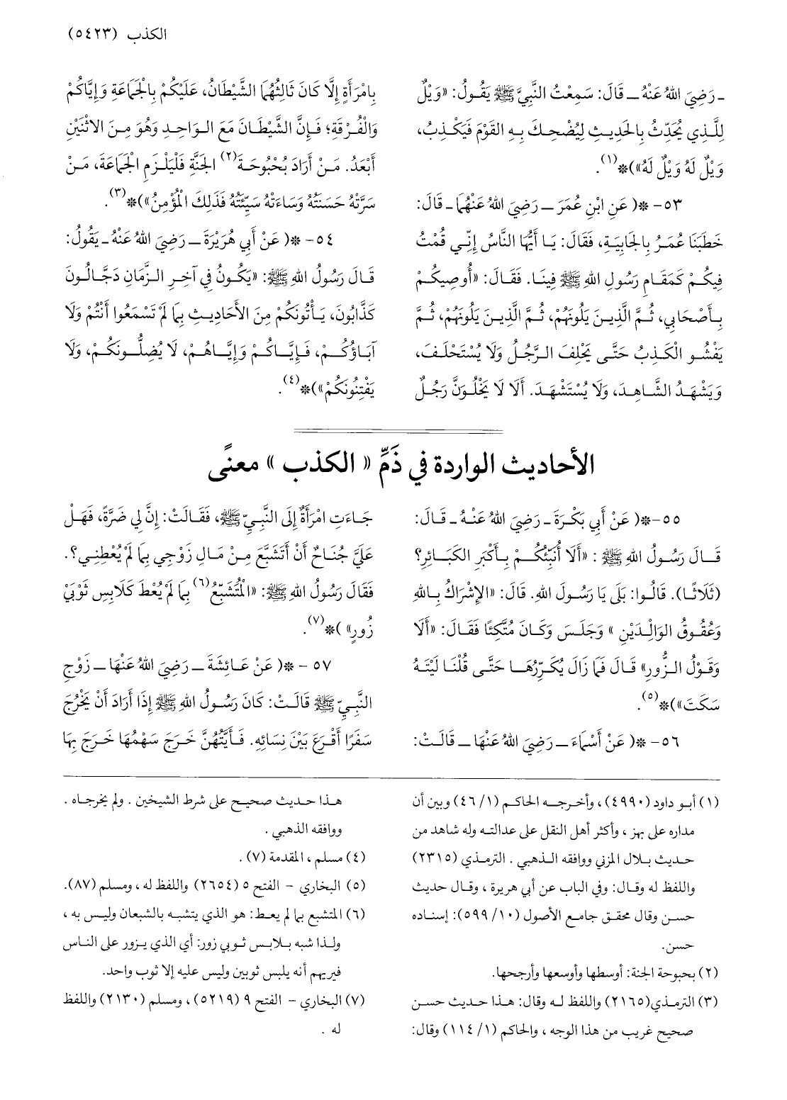 الأحاديث الواردة في ذمّ (الكذب) معنى