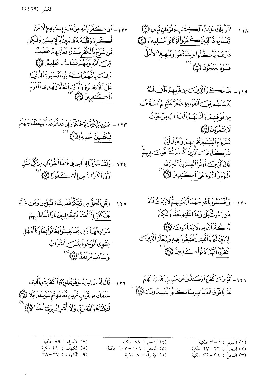 125- وَقُلِ الْحَقُّ مِنْ رَبِّكُمْ فَمَنْ شاءَ فَلْيُؤْمِنْ وَمَنْ شاءَ فَلْيَكْفُرْ إِنَّا أَعْتَدْنا لِلظَّالِمِينَ ناراً أَحاطَ بِهِمْ سُرادِقُها وَإِنْ يَسْتَغِيثُوا يُغاثُوا بِماءٍ كَالْمُهْلِ يَشْوِي الْوُجُوهَ بِئْسَ الشَّرابُ وَساءَتْ مُرْتَفَقاً (29) «8»