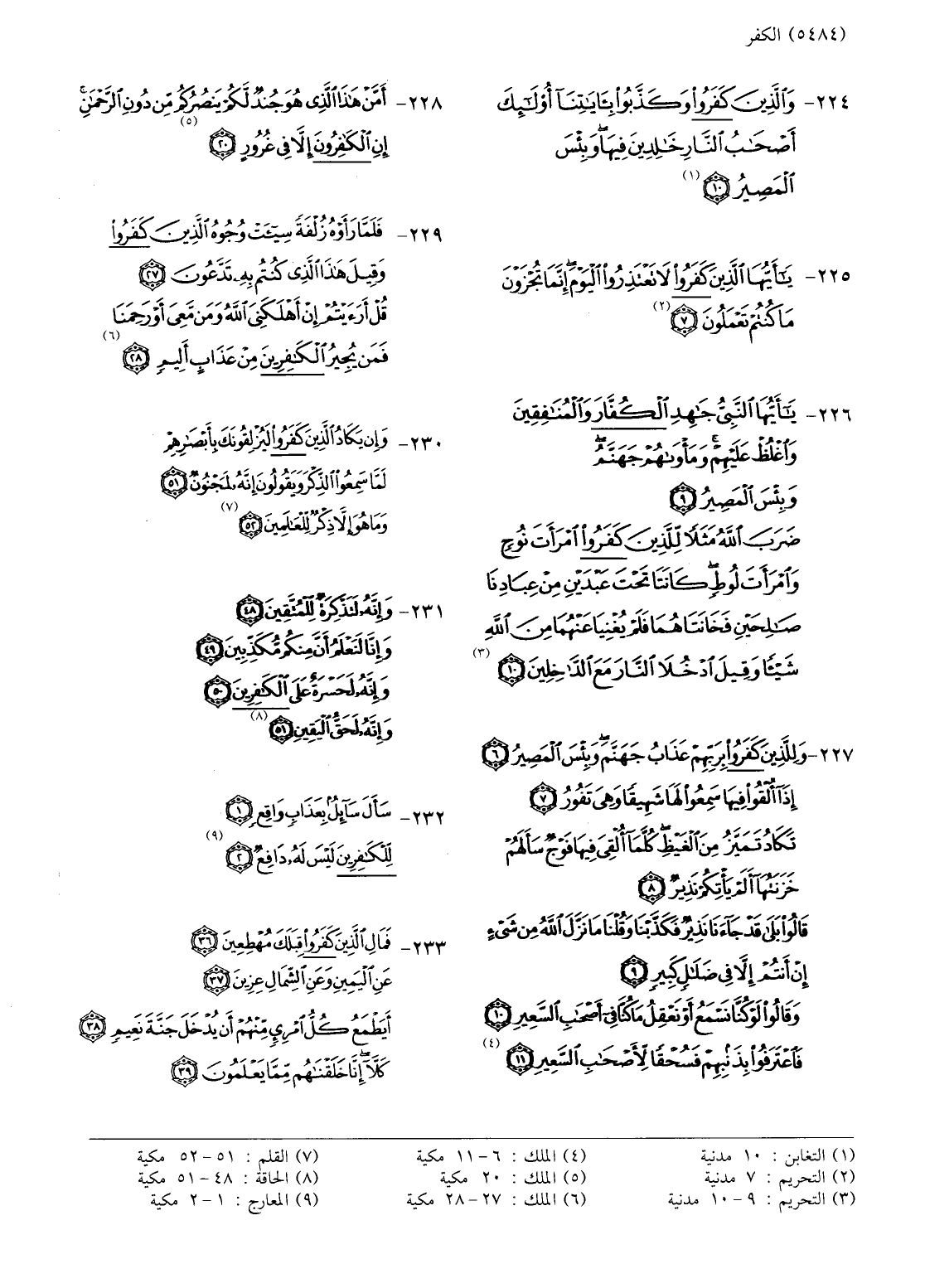 226- يا أَيُّهَا النَّبِيُّ جاهِدِ الْكُفَّارَ وَالْمُنافِقِينَ وَاغْلُظْ عَلَيْهِمْ وَمَأْواهُمْ جَهَنَّمُ وَبِئْسَ الْمَصِيرُ (9) ضَرَبَ اللَّهُ مَثَلًا لِلَّذِينَ كَفَرُوا امْرَأَتَ نُوحٍ وَامْرَأَتَ لُوطٍ كانَتا تَحْتَ عَبْدَيْنِ مِنْ عِبادِنا صالِحَيْنِ فَخانَتاهُما فَلَمْ يُغْنِيا عَنْهُما مِنَ اللَّهِ شَيْئاً وَقِيلَ ادْخُلَا النَّارَ مَعَ الدَّاخِلِينَ (10) «3»