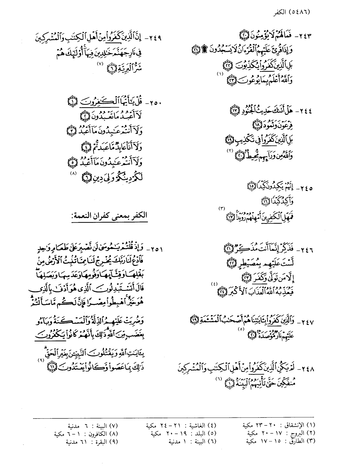 248- لَمْ يَكُنِ الَّذِينَ كَفَرُوا مِنْ أَهْلِ الْكِتابِ وَالْمُشْرِكِينَ مُنْفَكِّينَ حَتَّى تَأْتِيَهُمُ الْبَيِّنَةُ (1) «6»